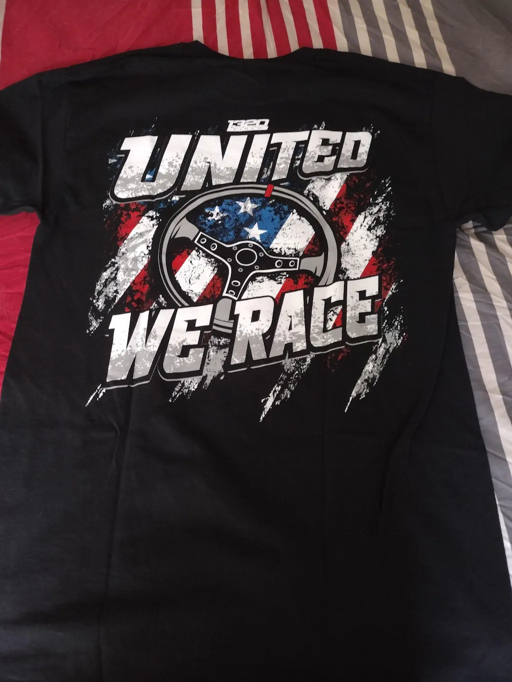 Show off your love of cars and patriotism with our United We Race T-Shirt! This comfortable t-shirt features an all new 1320video logo printed on the front, with United We Race covering the entire back. Perfect for any auto enthusiast who loves both speed and their country!